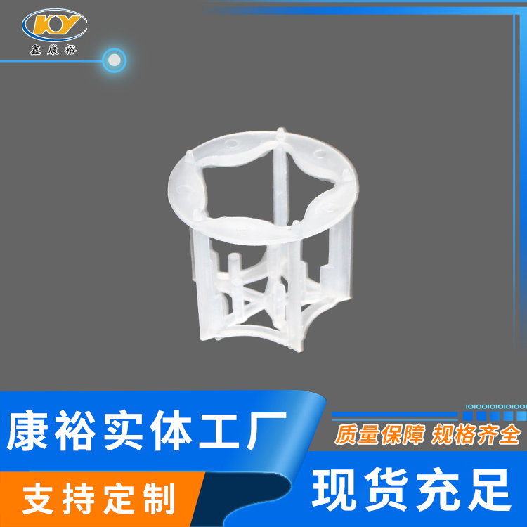 塑料五角環具有重量輕,耐熱、耐化學腐蝕,孔隙率大、壓降及傳質單元高度低、泛點高、氣液接觸充份、傳質效率高等特點,廣泛用于石油、化工、氯堿、煤氣、環保等行業的各種介溫度60度-280度的塔填料中, 我廠生產的塑料五角環規格為30mm,材質可按客戶要求選擇。